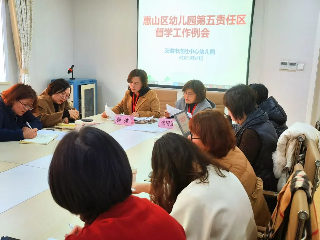 为进一步加强幼儿园规范办园行为,确保新学期幼儿园的工作能有序进行,2023 年2月14日下午,惠山区幼儿园第五责任区新学期督学工作例会在洛社中心幼儿园召开。第五督学责任区十所幼儿园的联络员与协理员参与了此次会议,会议由杨洁、沈国亚两位责任督学主持。