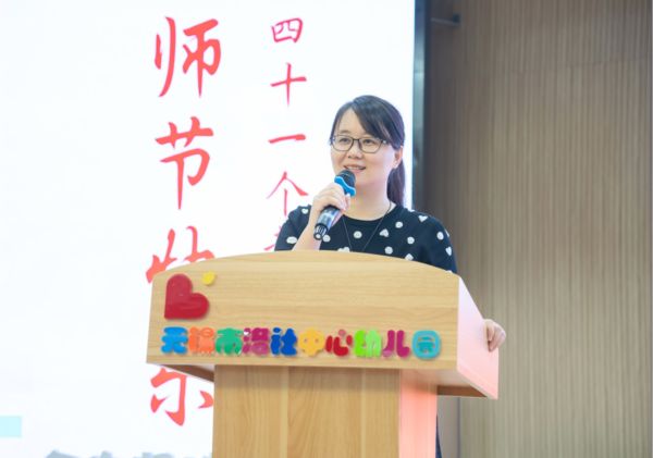 秦兰园长以《以教育家精神铸魂强师,谱写学前教育新篇章》为题发表致辞。她指出,教育家精神是幼教人的精神灯塔,我园教师正将其深度融入“追光者联盟”团队建设。她强调,教师要坚守理想信念之根,磨砺专业能力之基,秉持仁爱之心担当引路人使命,携手共建优质学前教育生态圈,为教育强国注入幼教力量。